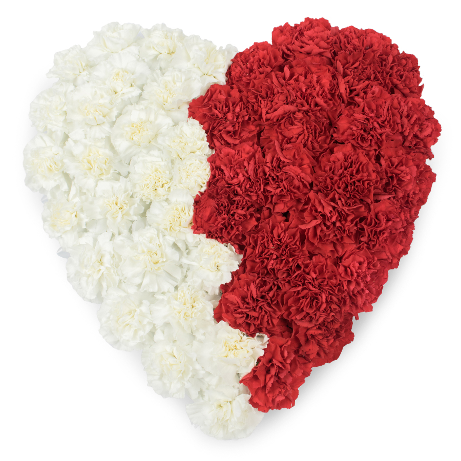 Introducing a classic floral creation that brings together hand-selected white and red carnations in an artful heart-shaped display. Each flower exudes freshness and vibrancy, making this arrangement a memorable declaration of love and care.